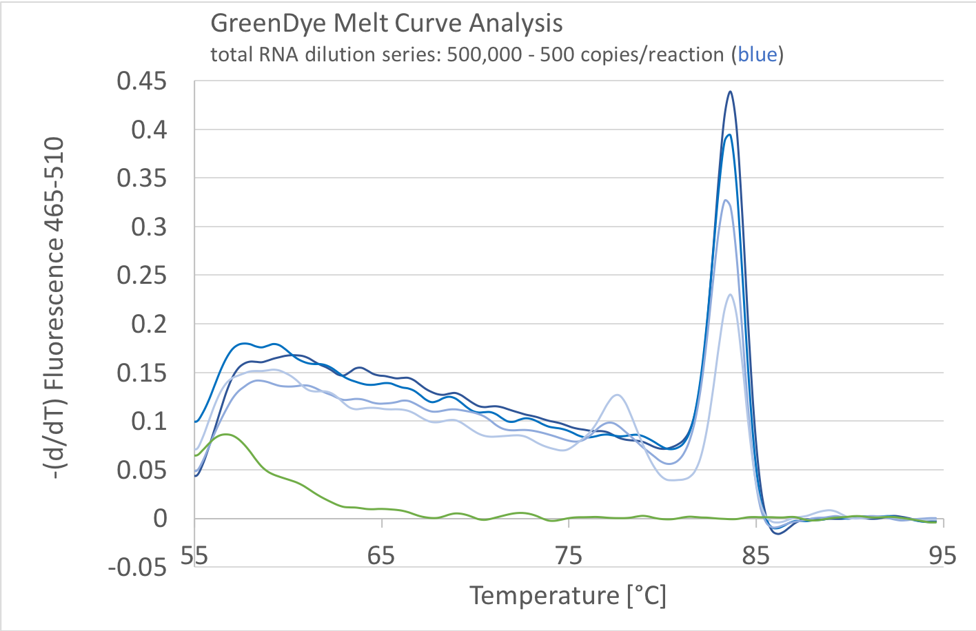 Volcano3G RT-PCR 2x Master mix with GreenDye is suitable for high resolution melting (HRM) experiments, allowing you to quickly identify unspecific amplicons and thus save time and effort when optimizing your PCR.